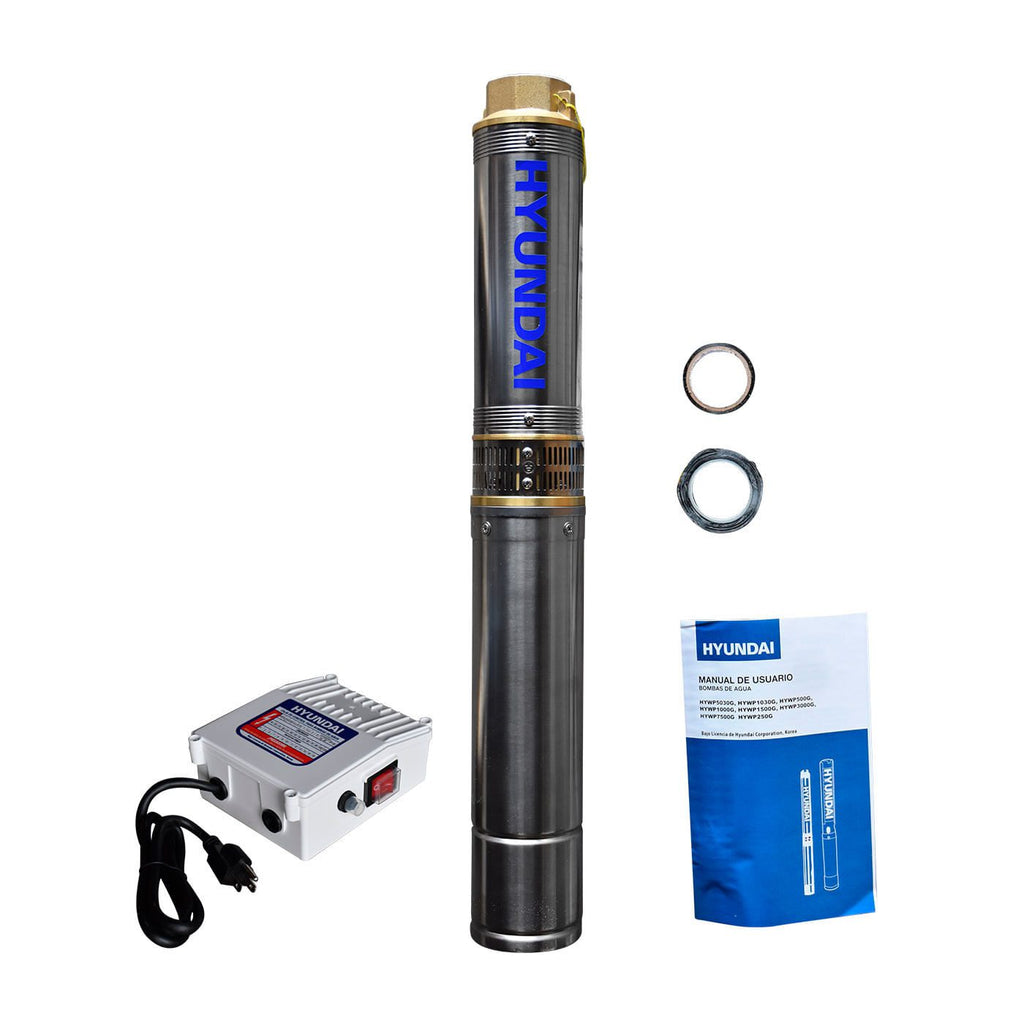 Bomba de agua con motor BIFÁSICO marca HYUNDAI. Cuerpo de acero inoxidable. Ideales para pozos profundos de hasta un diámetro de 4 de agua limpia.